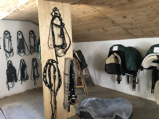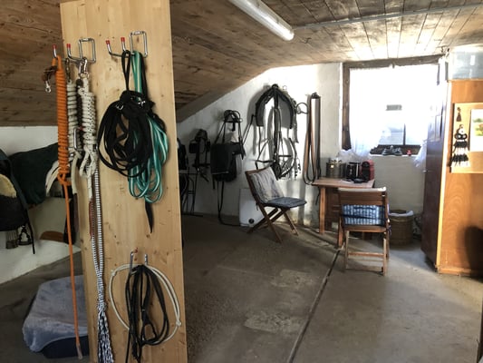 - Sattelkammer mit spezieller Entfeuchtungsanlage leicht beheizt, reicht zum Trocknen von nasser Reitkleidung, Schabracken, Hufschuhen und Abschwitzdecken